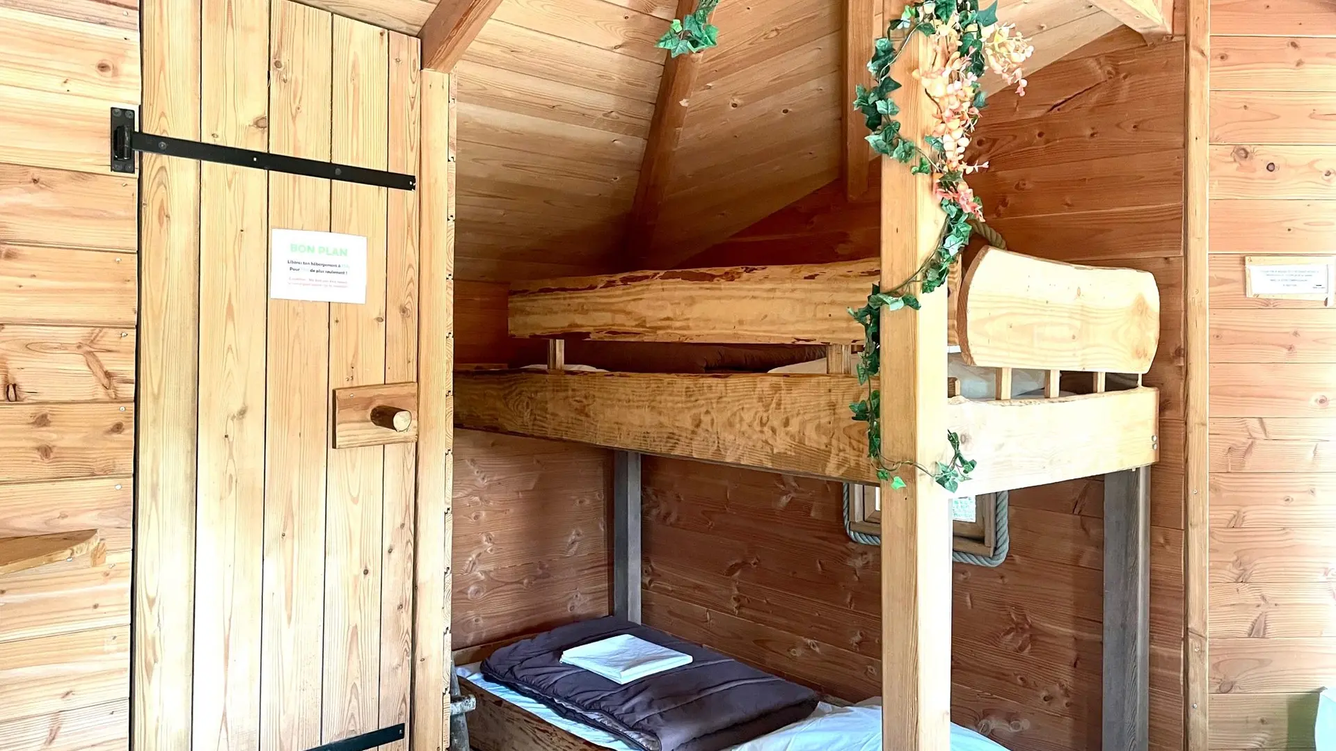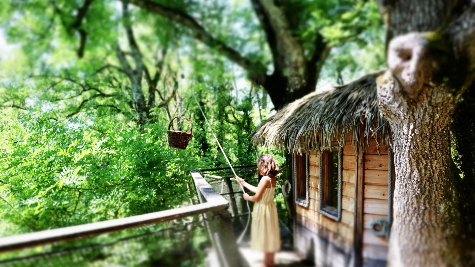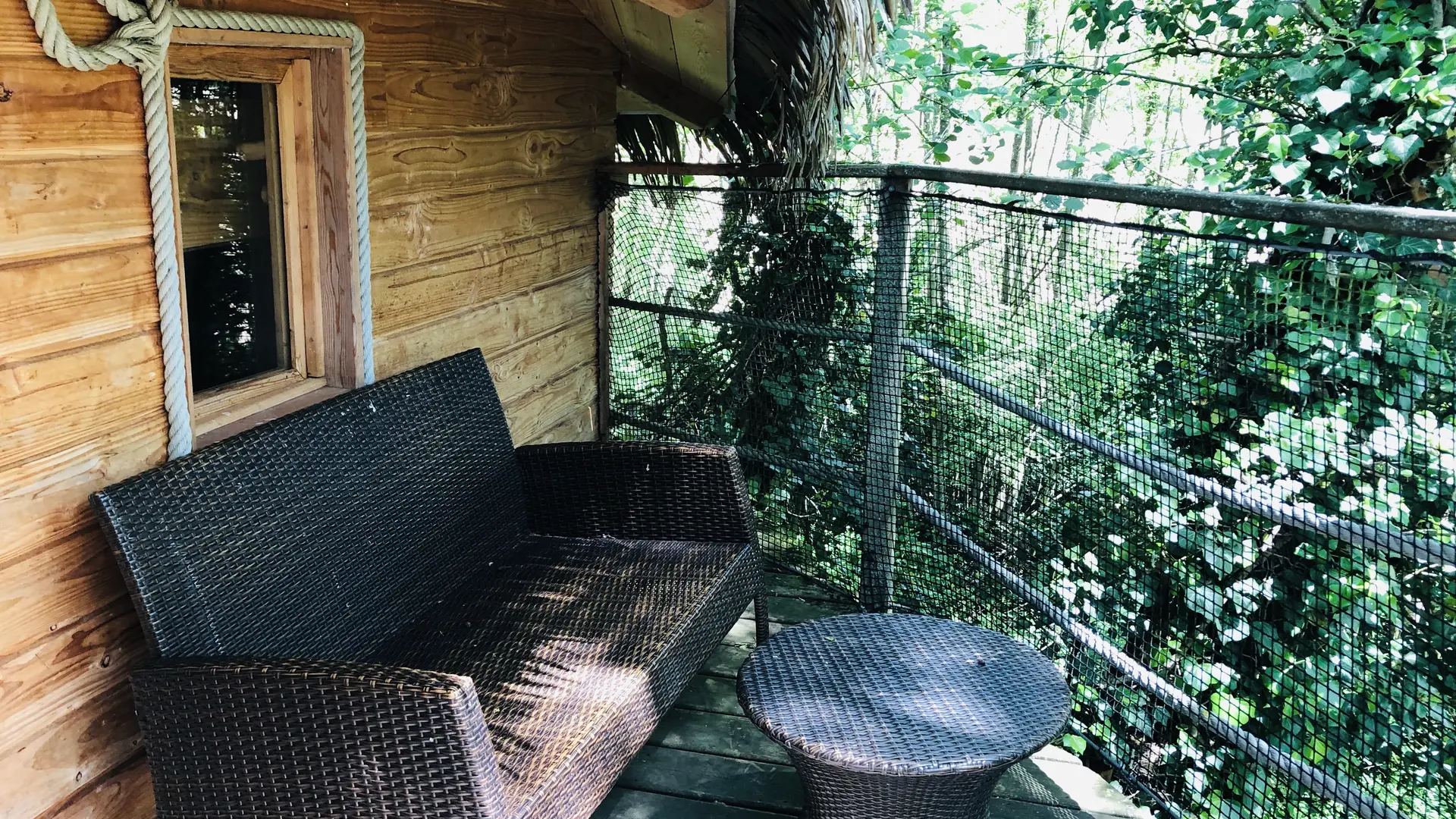 Abgelegenes Baumhaus, das in 12 bis 15 Minuten zu Fuß erreichbar ist. Dieses Baumhaus ist ideal für Familien. Es verfügt über ein Doppelbett und zwei einfache Etagenbetten. Sie werden die herrliche, geräumige Terrasse mit Blick auf den Teich zu schätzen wissen. Der Zugang erfolgt über eine Treppe und eine große Hängebrücke.