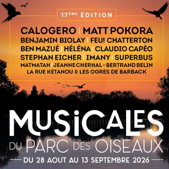 Chaque année, le Parc des Oiseaux vous propose une programmation éclectique mêlant scènes française et internationale avec des artistes prestigieux.