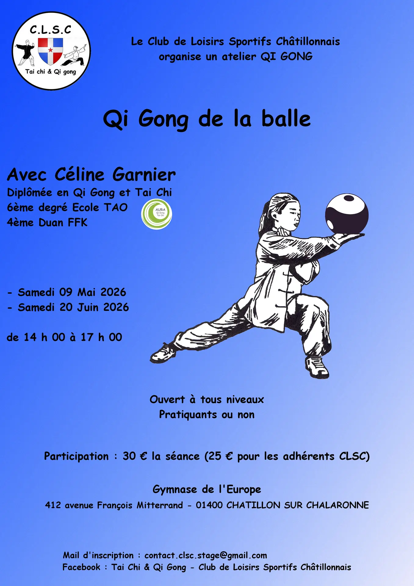We offer a workshop on ball work in Qi Gong.