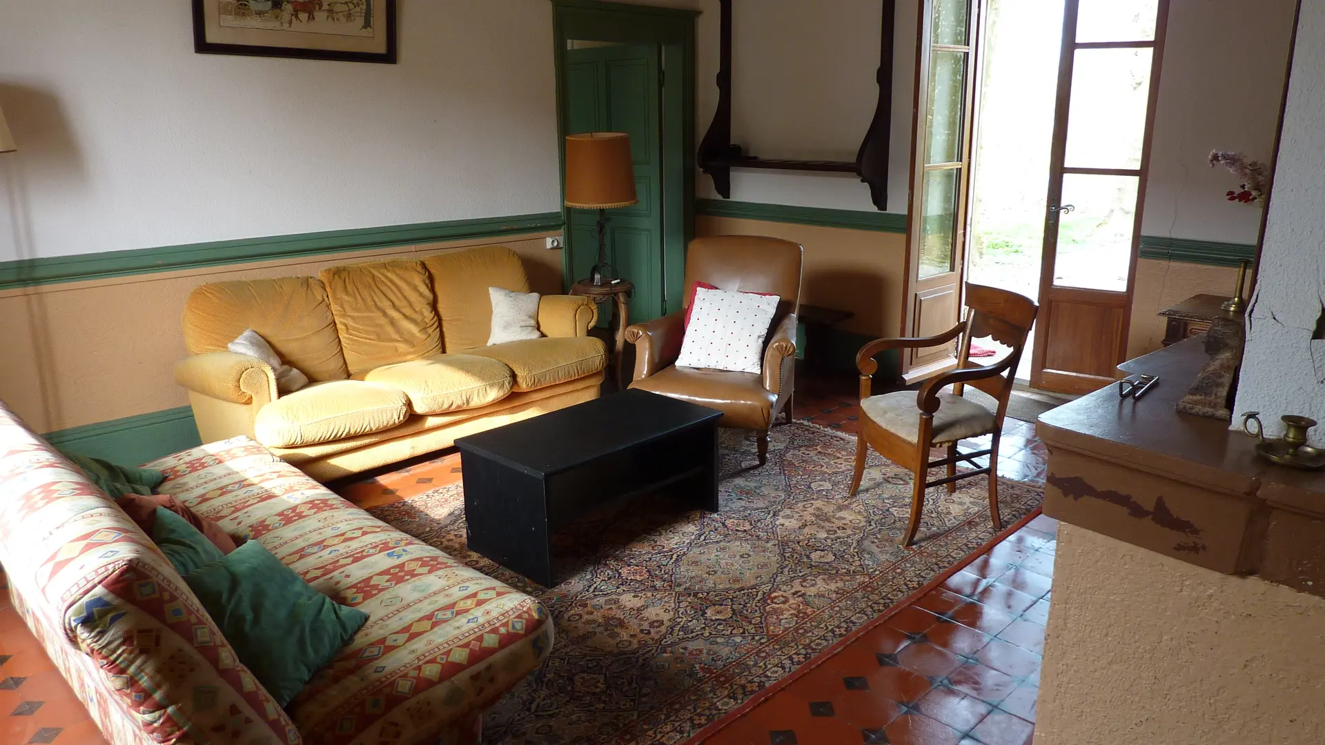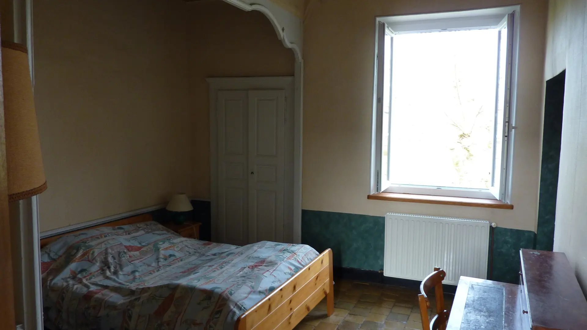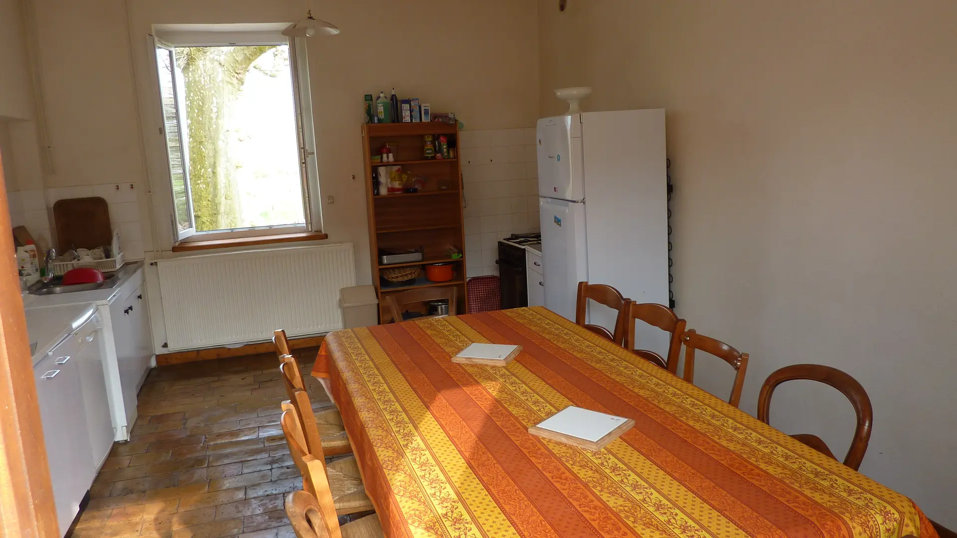 This former hunting lodge on 2 levels, equipped with numerous sleeping facilities, is located in the extension of a farmhouse. Ground floor: entrance hall, large kitchen, living room (fireplace), cellar/storage room.