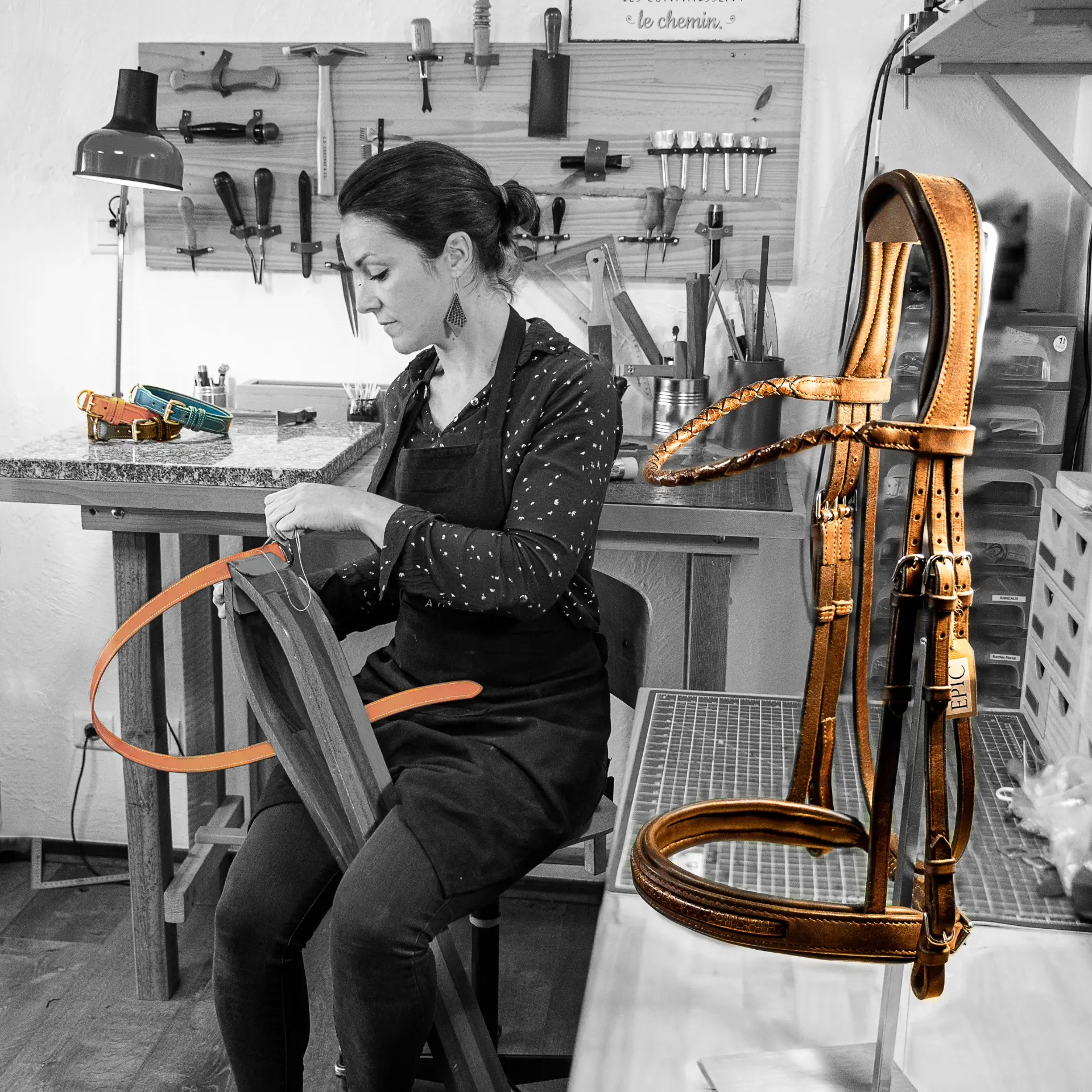 Push open the door of the workshop and let yourself be transported by the smell of leather: come and discover the precise gestures of a craftsman: the saddler and harness maker.