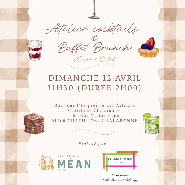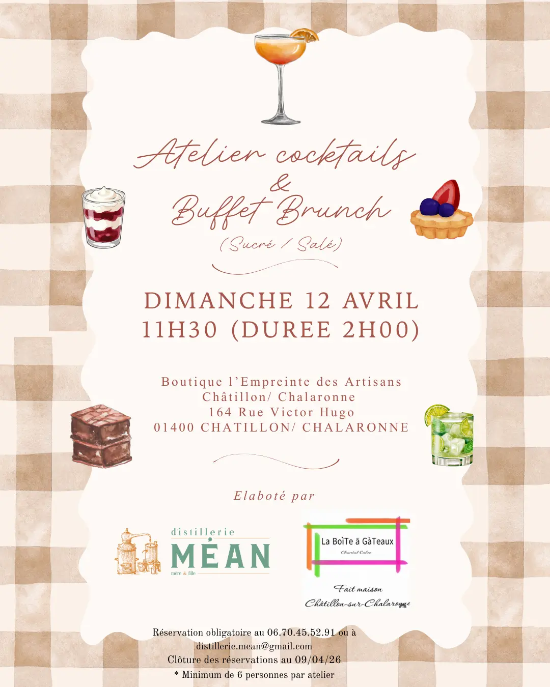 L’atelier cocktails sera accompagné d’un délicieux Buffet Brunch salé / sucré concocté par Chantal de La Boite à Gâteaux.