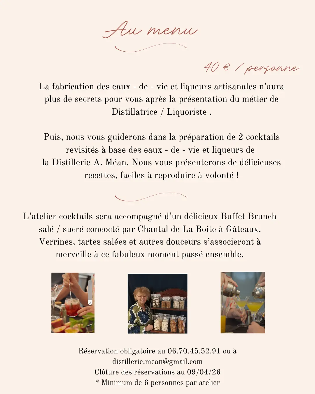 Puis, nous vous guiderons dans la préparation de 2 cocktails revisités à base des eaux - de - vie et liqueurs de