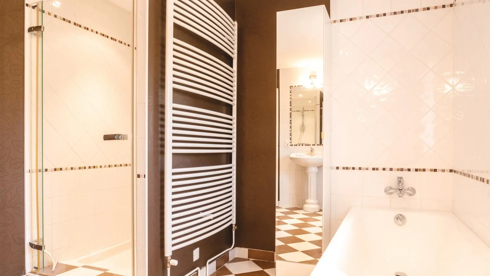 Les serviettes de douche sont fournies, et les lits sont réalisés.