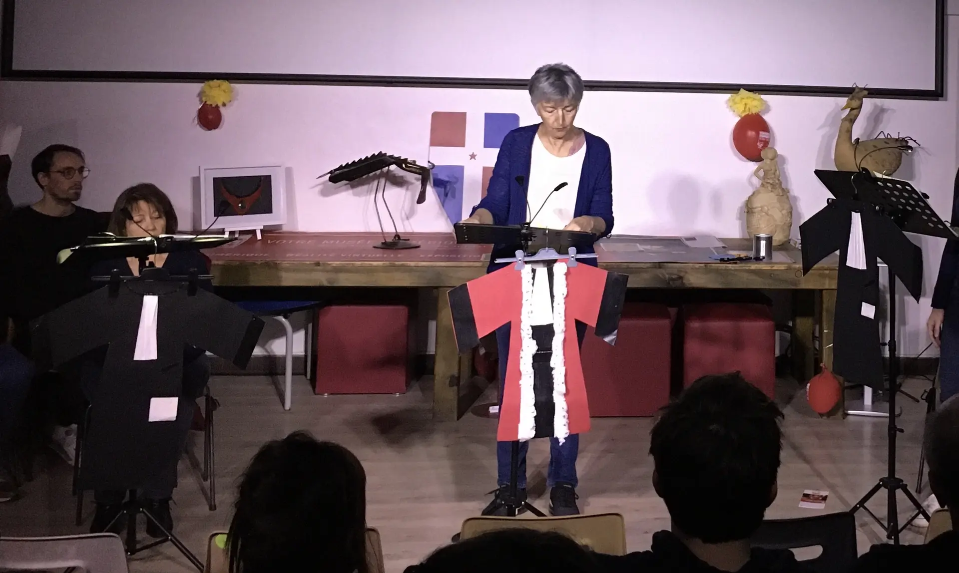 Des « petites formes » (lectures, extraits, de pièces, sketches,…) dans des lieux « hors les murs » de la Communauté de Communes de la Dombes : bibliothèques, musées, établissements scolaires, maison de retraite, cours, jardins, cafés, domiciles....