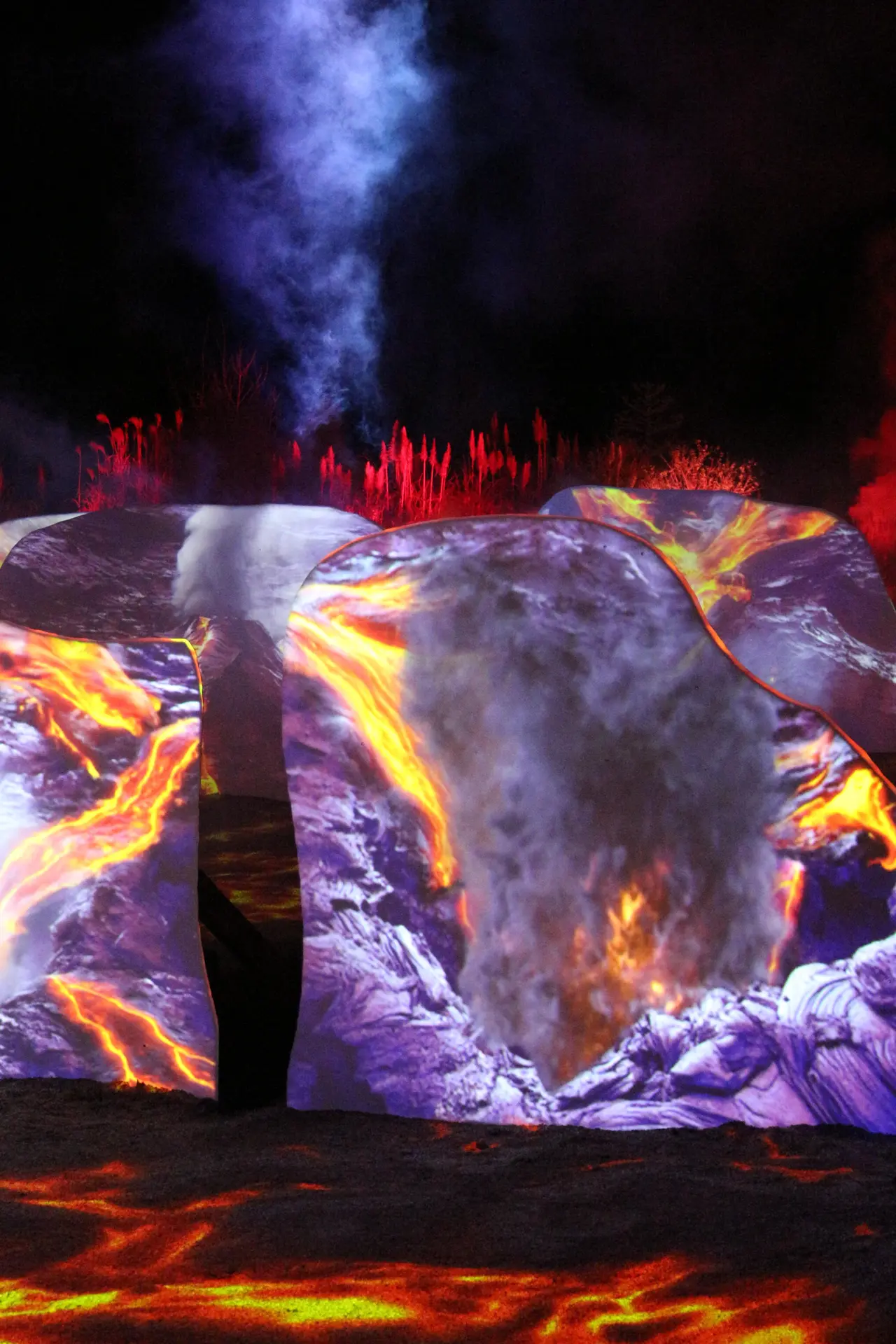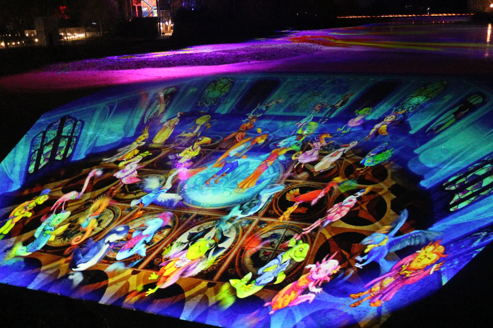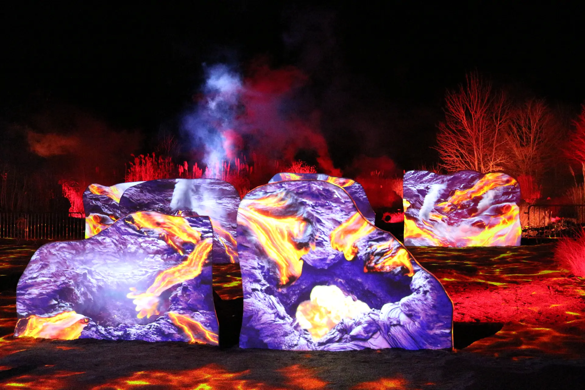 Evénement Sons et Lumières créé par Les Allumeurs de Rêves spécialement pour le Parc des Oiseaux et, qui s’appuie sur des techniques de vidéo mapping audacieuses et des objets lumineux.