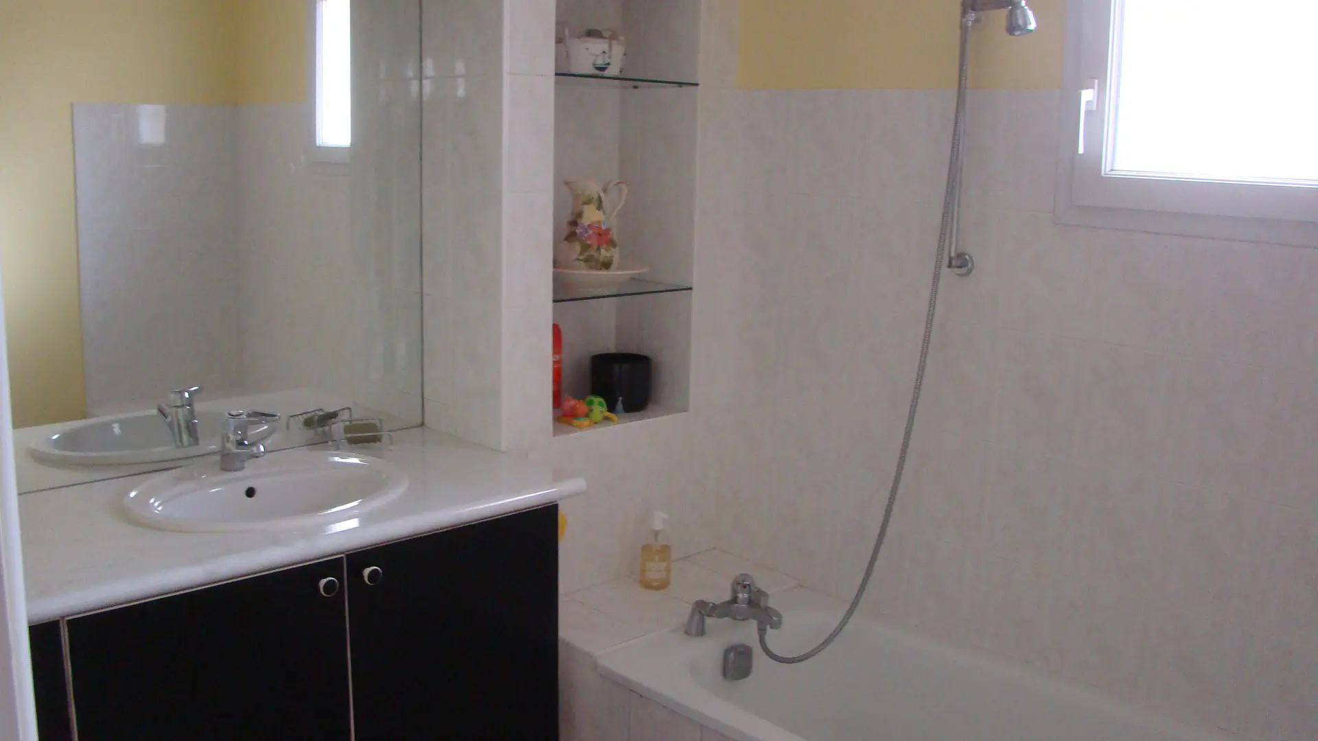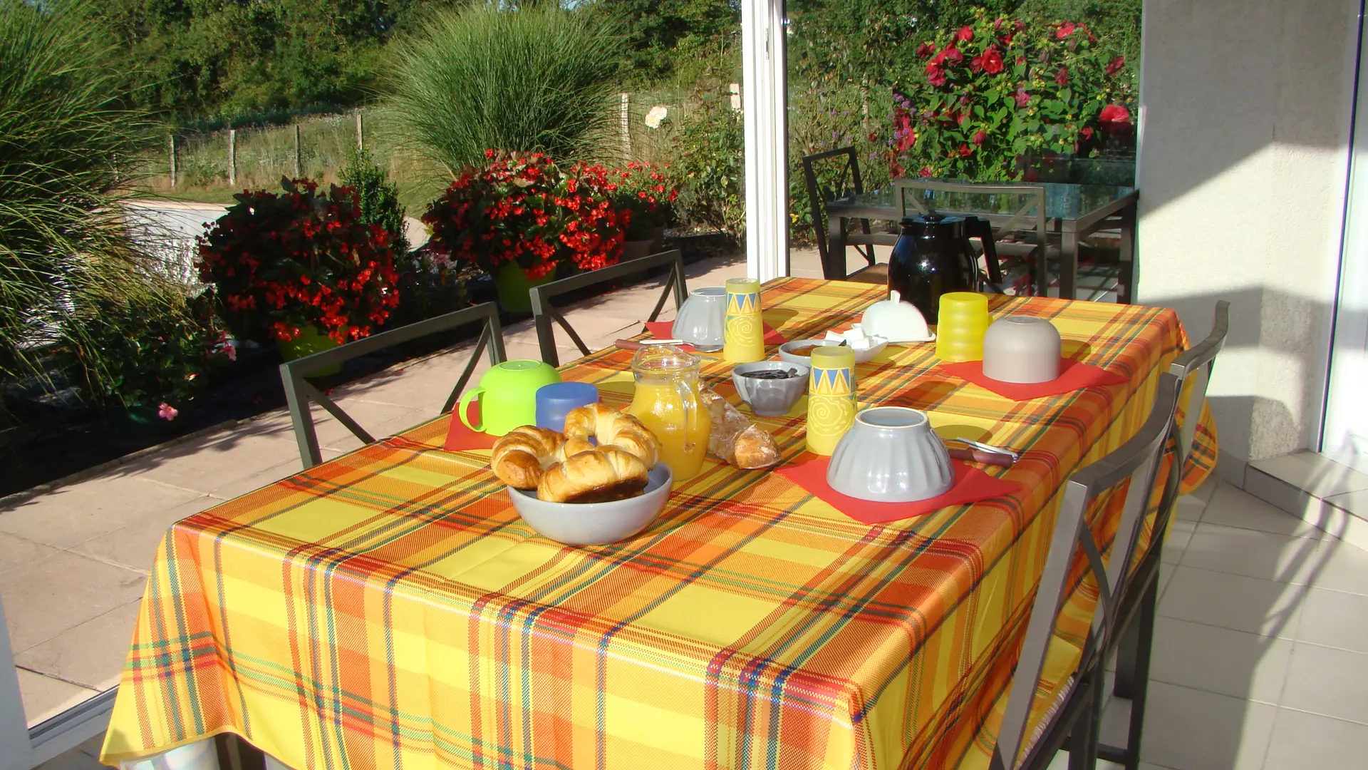 La chambre d'hôtes climatisée est située au premier étage de la maison du propriétaire avec une deuxième chambre pour les enfants ou amis, salle de bain privative et WC.
