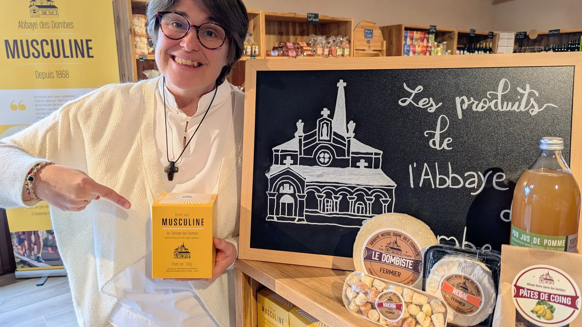 Au magasin de l'Abbaye, les gourmands pourront se régaler avec nos fromages bio, les pommes du verger, nos pâtes de fruits et confitures, les biscuits et autres spécialités produites dans de nombreuses abbayes. Les sportifs trouveront la fameuse Musculine (produit énergétique à partir de la recette des moines),