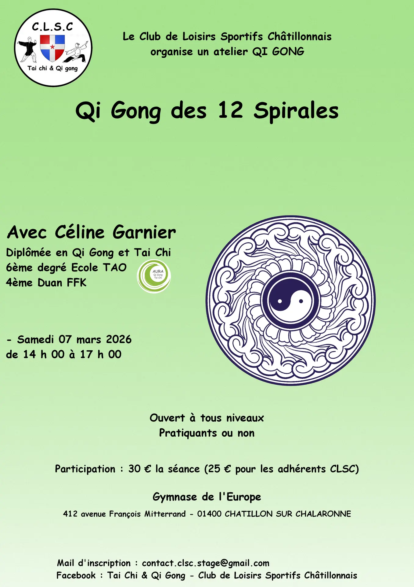 Le Club de Loisirs Sportifs Châtillonnais organise un atelier Qi Gong !