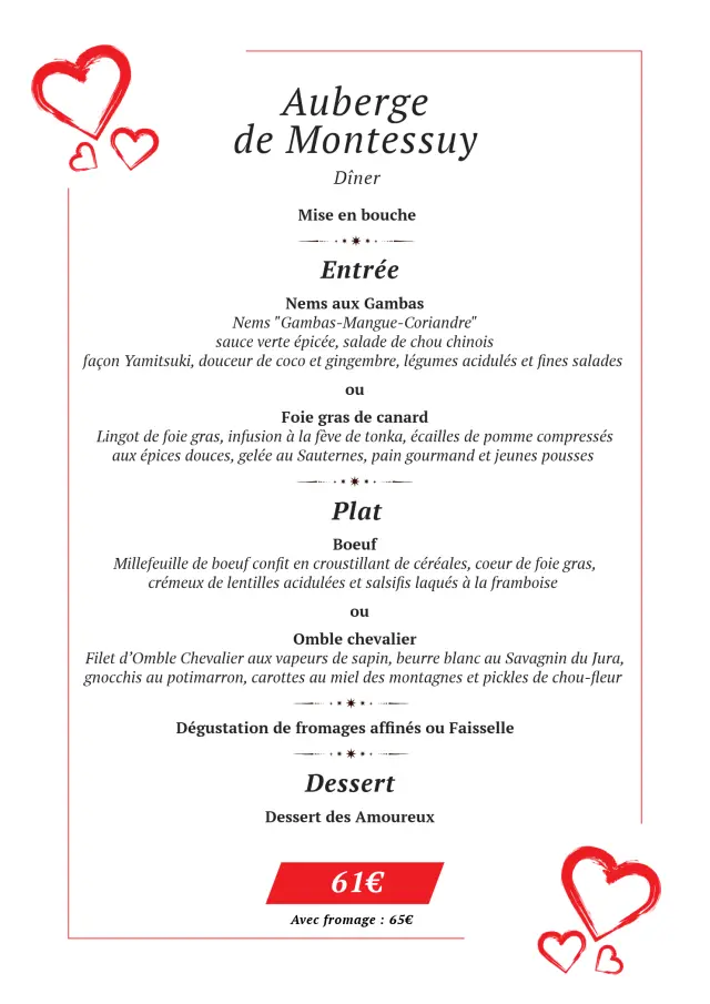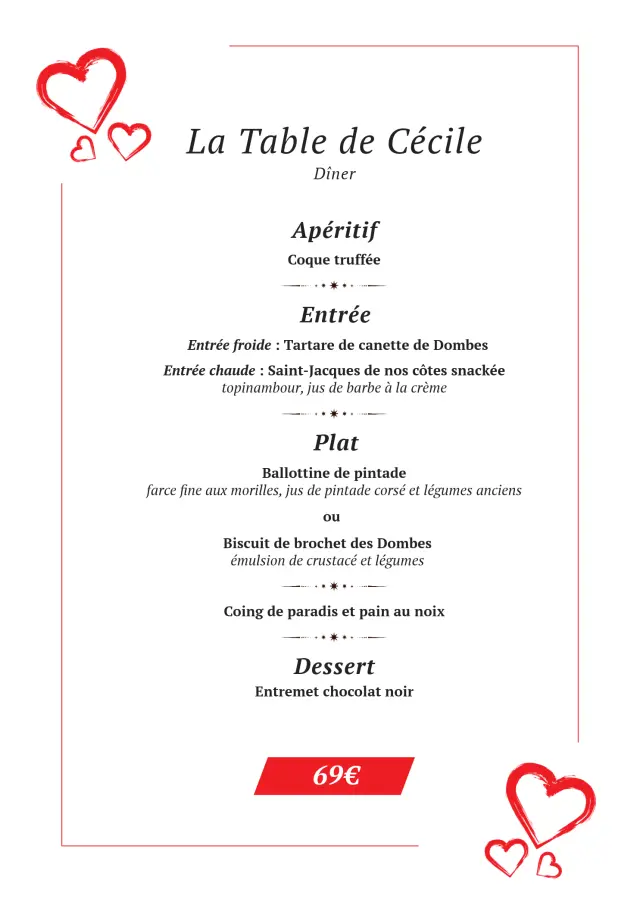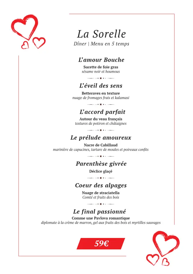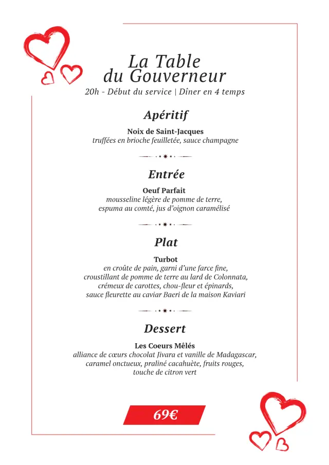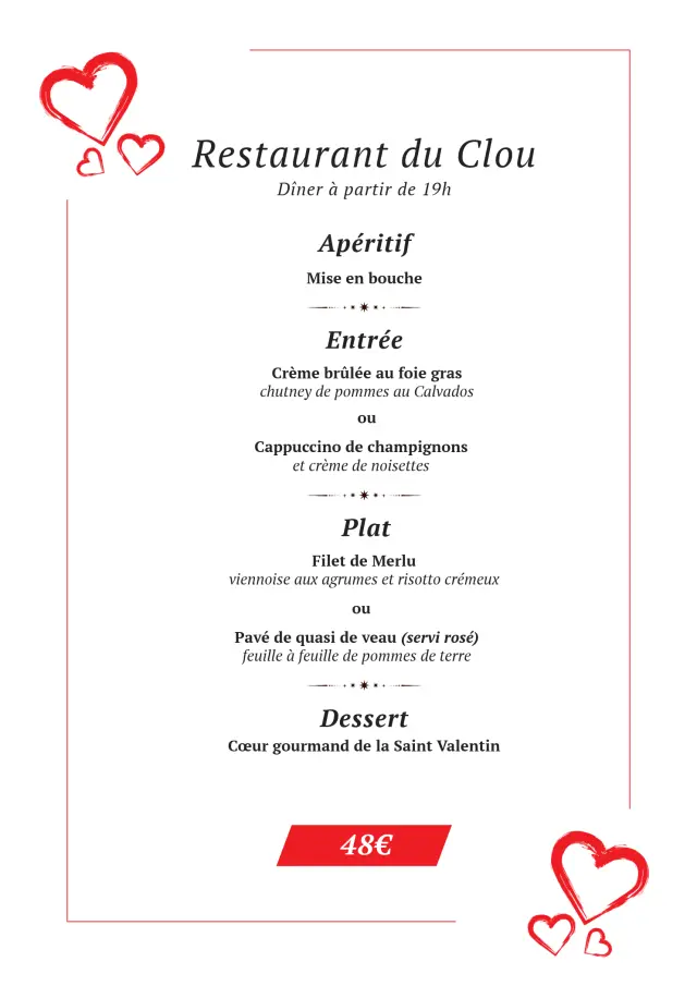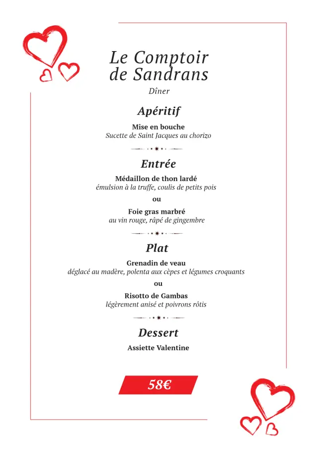 Découvrez tousles menuspour la Saint Valentin